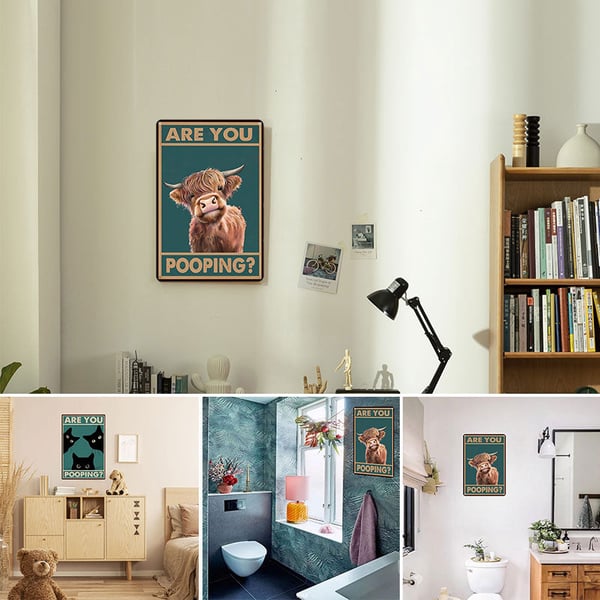 🤭Humorous Bathroom Decor: This vintage tin sign features a charming highland cow with the funny text "Are You Pooping?" It's perfect for adding a touch of humor to your bathroom or restroom. Eye-catching and playful, it will bring a smile to everyone who sees it.